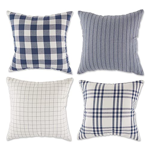 DII Decorative Square Throw Pillow Cushion Cover Set, Hidden Zipper, Cotton & Machine Washable, 18×18, French Blue Farmhouse, 4 Piece