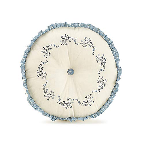 Home Pillow Modern Heirloom Collection Charlotte Round Embroidered Decorative Pillow 14” Bedspread, Blue
