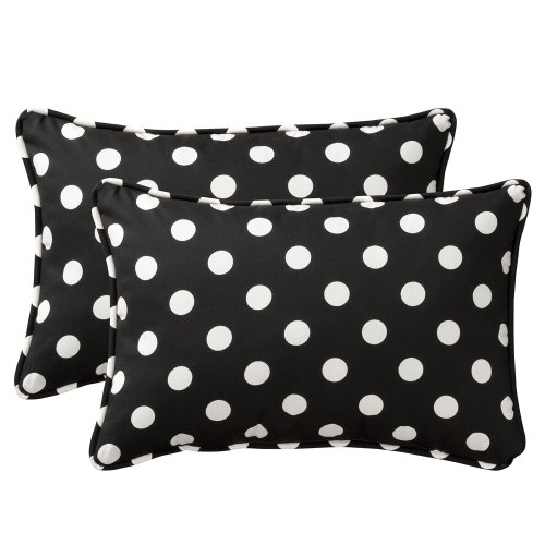 Pillow Perfect Outdoor/Indoor Polka Dot Black Oversized Lumbar Pillows, 24.5″ x 16.5″, Black, 2 Count