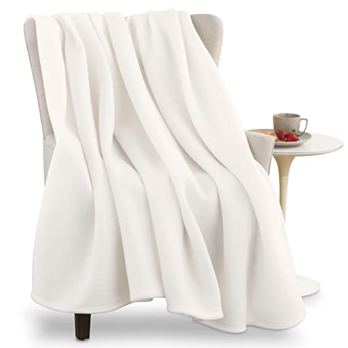 Vellux Soft 240 GSM Micro Fleece Plush Cozy Durable Lightweight Blanket Easy Care Machine Washable Pet Friendly Solid Bed Sofa Blankets, Full Queen, White
